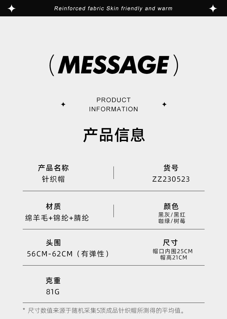 Autumn Winter Color-Block Knitted Hat for Women Outdoor Warm Versatile Wool Hat Trendy Cool Beanie Large Head Circumference Hat