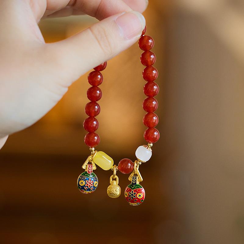 New Chinese Style Natural Red Agate Gold-Plated Beast Bracelet for Women, Zodiac Year Retro Style Beaded Jewelry Gift