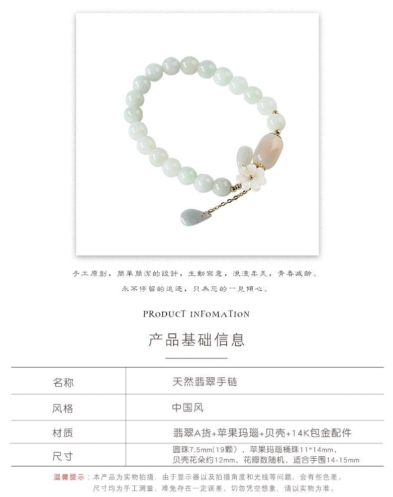 |Name|Original Natural Jade Bracelet with Natural Shell Flower and Jade Water Drop Design