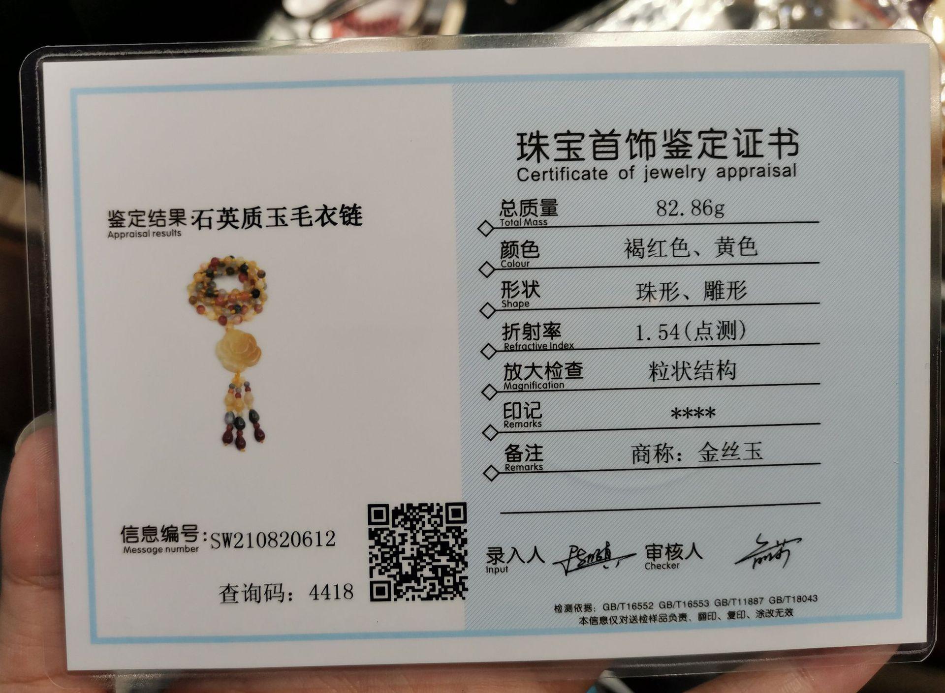 Qipao Beautifully Paired with Xinjiang Gold Silk Jade Sweater Chain Necklace Rose Blossom Prosperity Women's Clothing Hanging Chain Accessories Ethnic Style