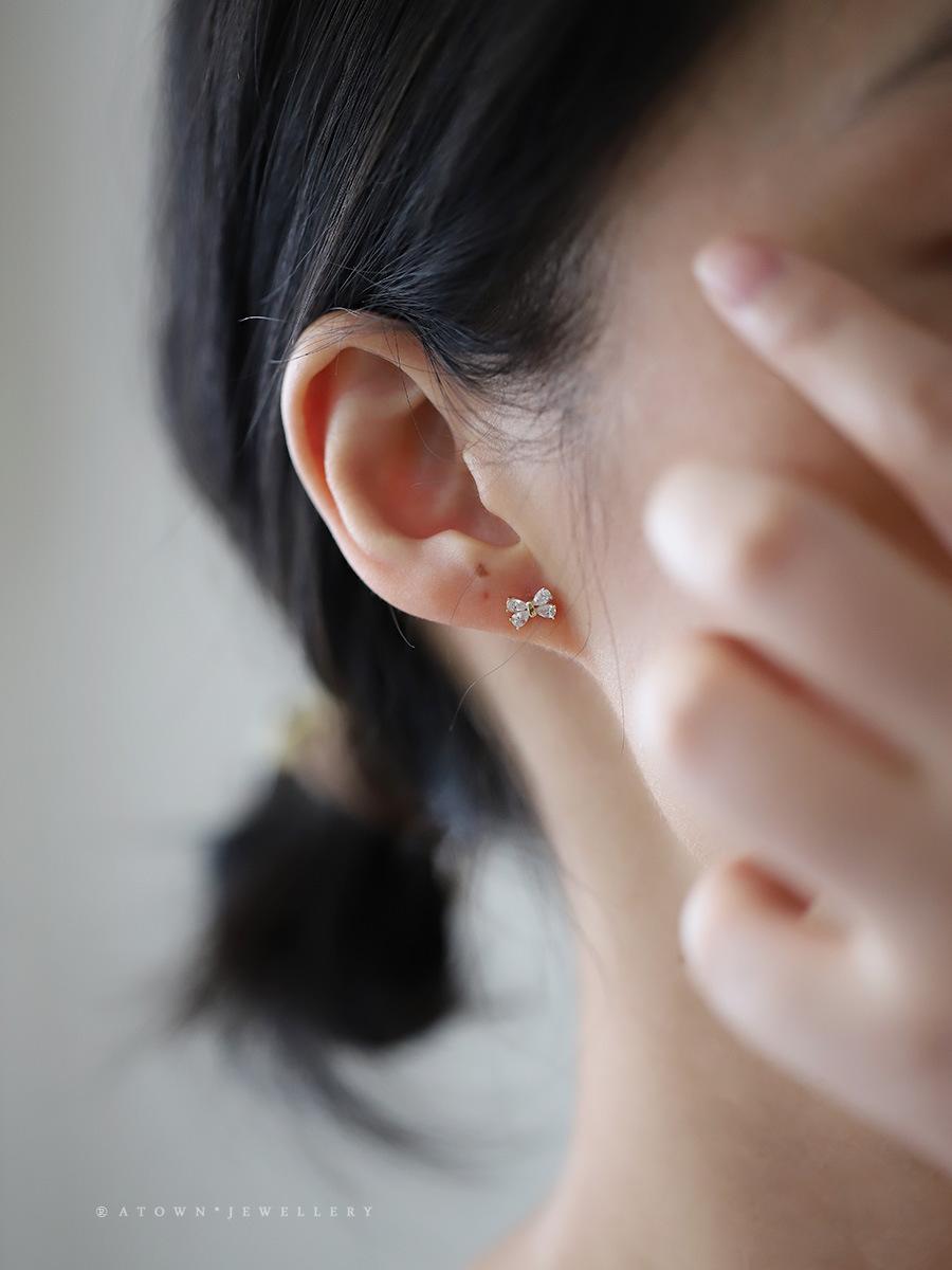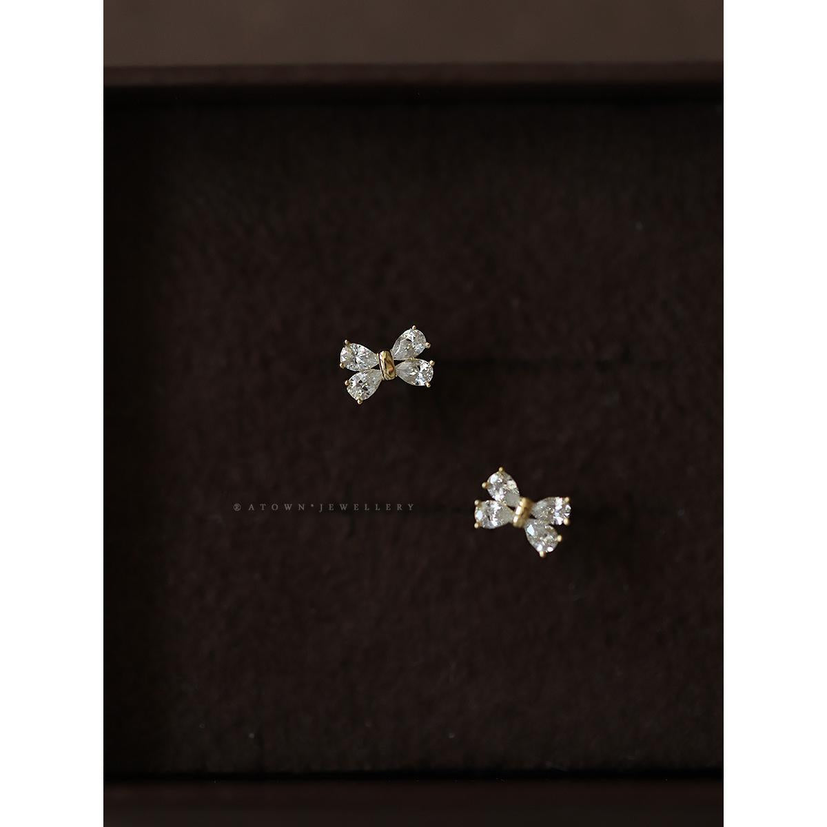 S925 Silver Plated 14K Gold Earrings Four Diamonds Bowknot Sweet Korean Design Mini Earrings Girlfriend Gift