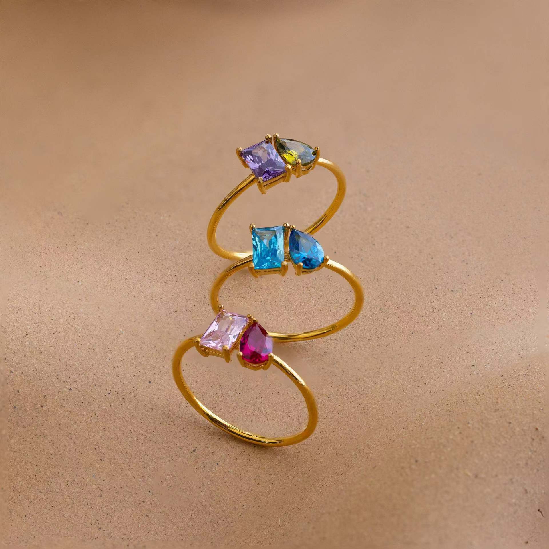 Titanium Steel Multicolor Zircon December Birthstone Ring Plain Band Ring December Birthstone Color Retention