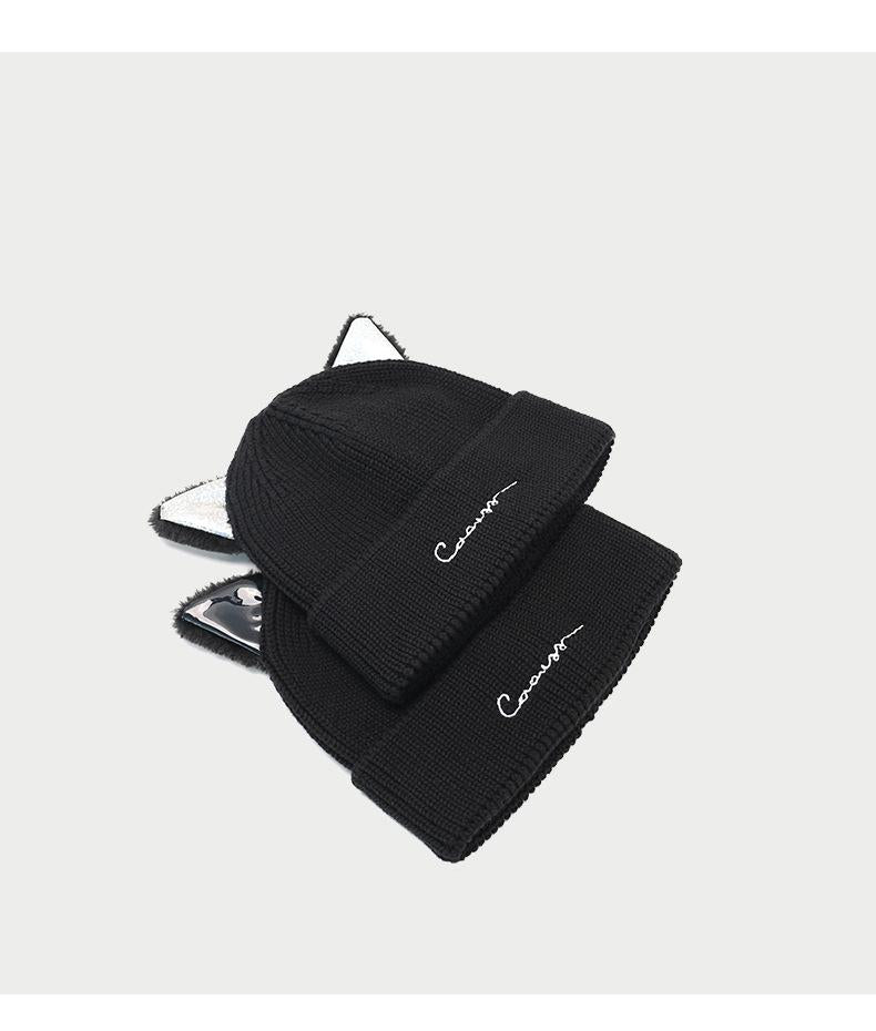 Knitted Hat for Women, Autumn and Winter New Korean Trendy Brand Wool Hat, Cat Ear Hat, Fashionable Knitted Hat, Casual Versatile