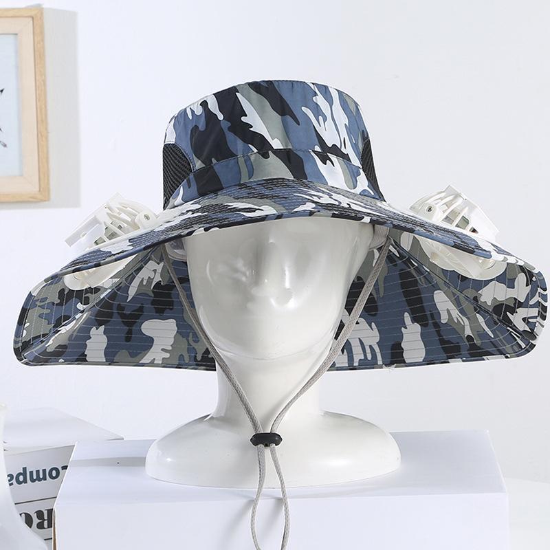 Men's Summer Wide Brim Dual Fan USB Rechargeable Fan Hat Adult Outdoor Sunshade Sun Protection Fishing Work Hat