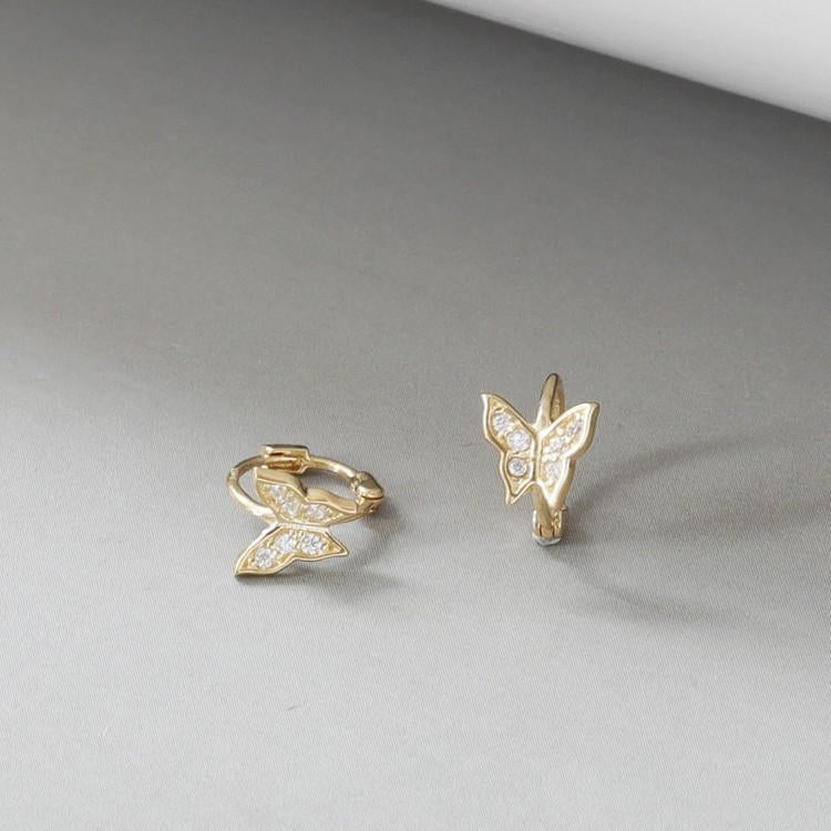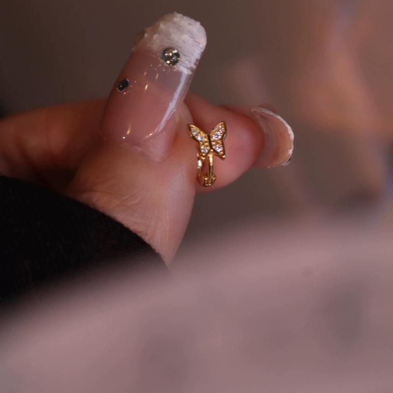 S925 Sterling Silver 18K Gold Plated Ear Cuff Mini Micro Inlaid 3D Butterfly Earrings Helix Ear Cuff Hoop Ear Jewelry