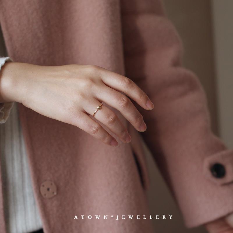 S925 Sterling Silver Plated 14K Gold Small Fat Heart Ring Simple Versatile Super Cute Lovely Thin Heart Ring