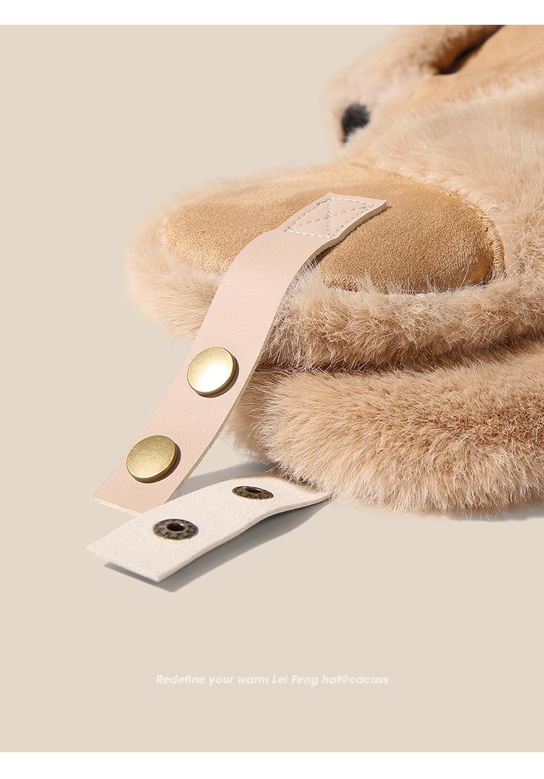 Autumn Winter Ear Protection Lei Feng Hat for Women, Thickened Cold-Proof Warm Hat, Outdoor Skiing Cycling Windproof Pullover Hat