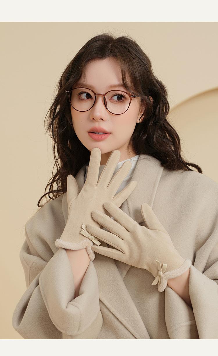 Autumn Winter Thermal Gloves for Women Outdoor Cold-Proof Fleece-Lined Warm Gloves Cute Bow Driving Gloves Touchscreen Compatible