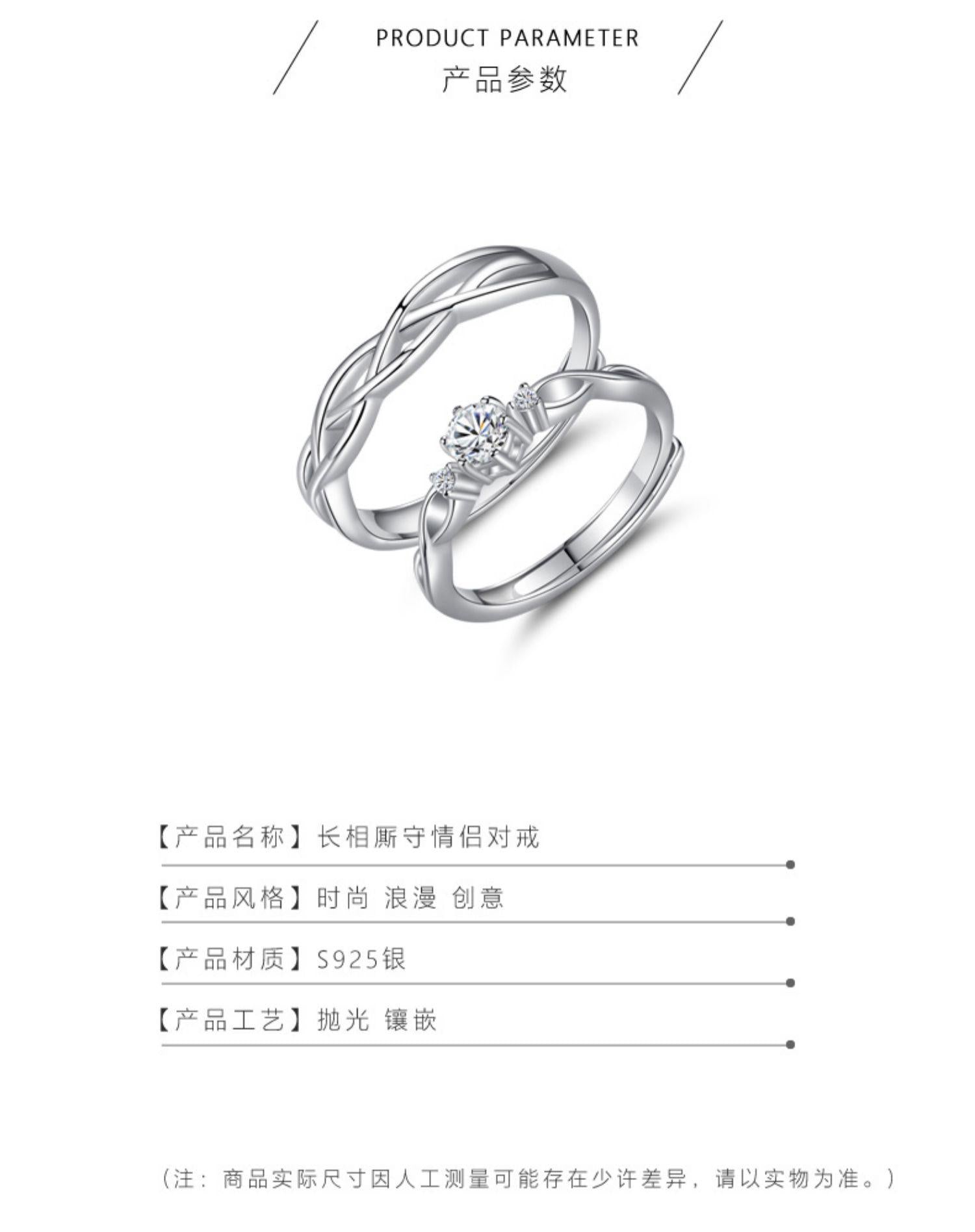 Couple Rings S925 Sterling Silver Pair of Rings Light Luxury High-end Feel Proposal Diamond Ring 520 Gift for Boyfriend and Girlfriend