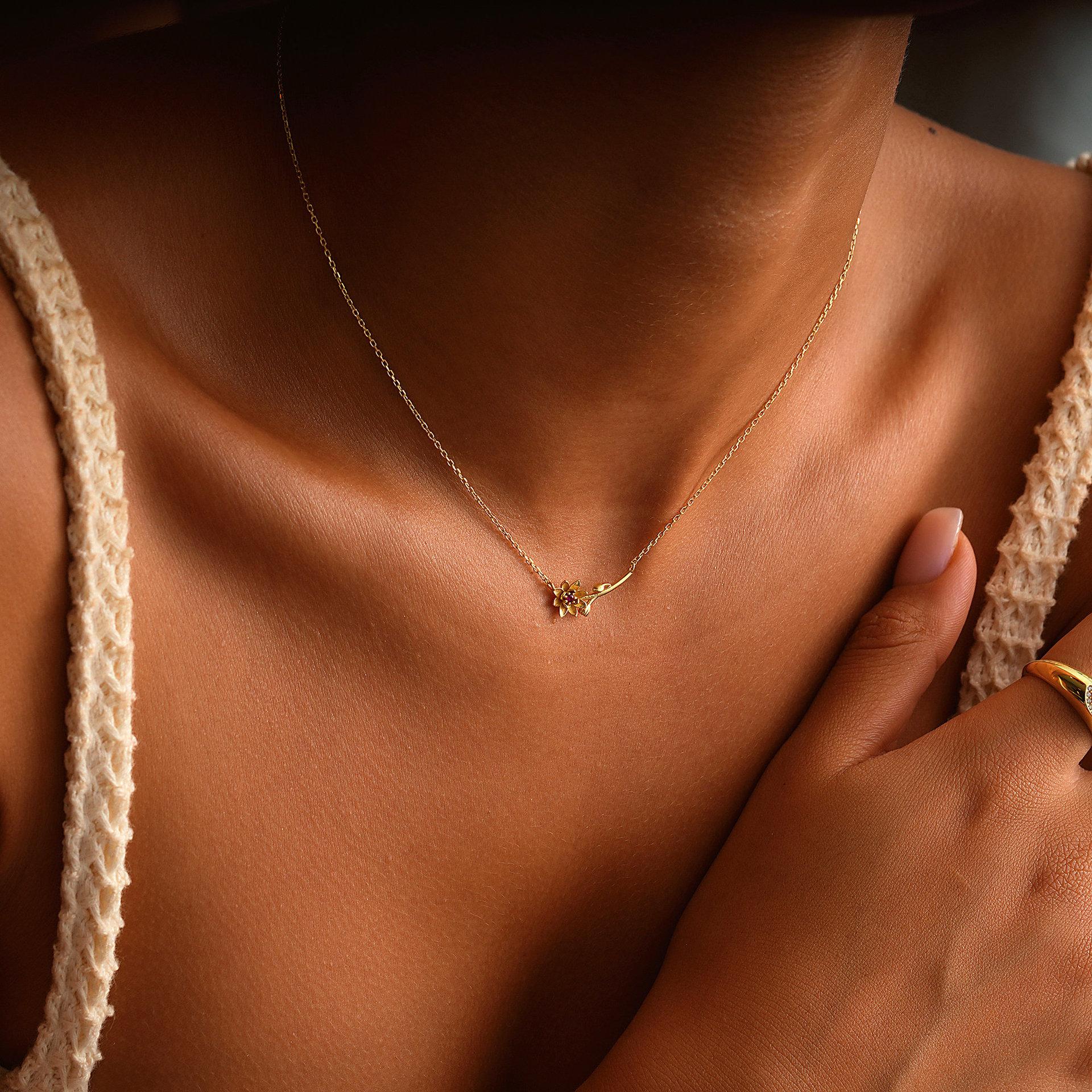 December Birthstone Pendant 3D Decorative Flower Pendant Necklace Gold-Plated Sweater Chain