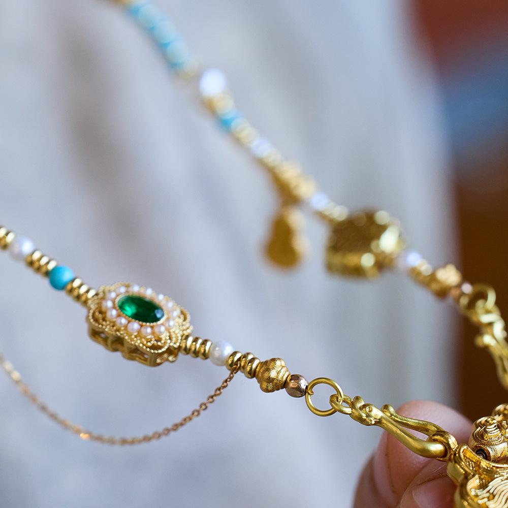 |Material|Gold-plated copper, imitation turquoise, imitation pearl