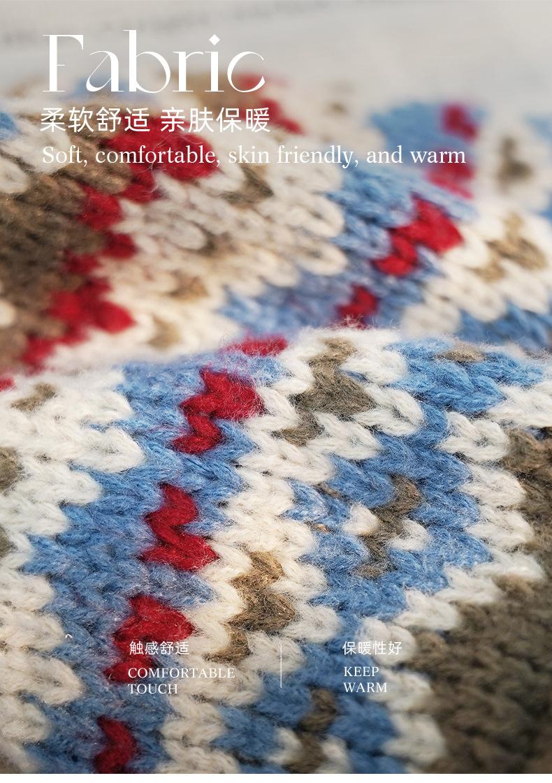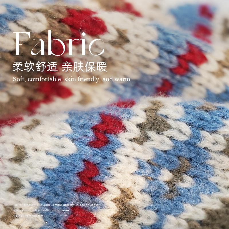 Korean Style Hat for Women Winter Knitted Drawstring Slouchy Beanie Fair Isle Style Retro Versatile Wool Hat for Women