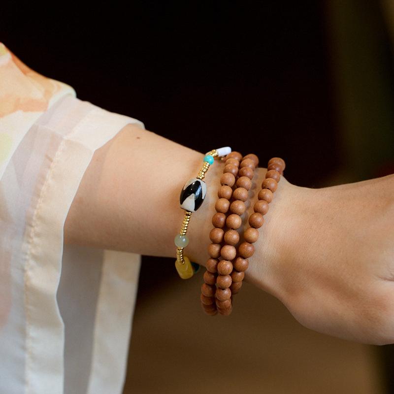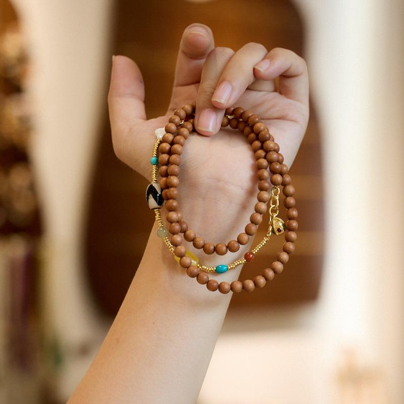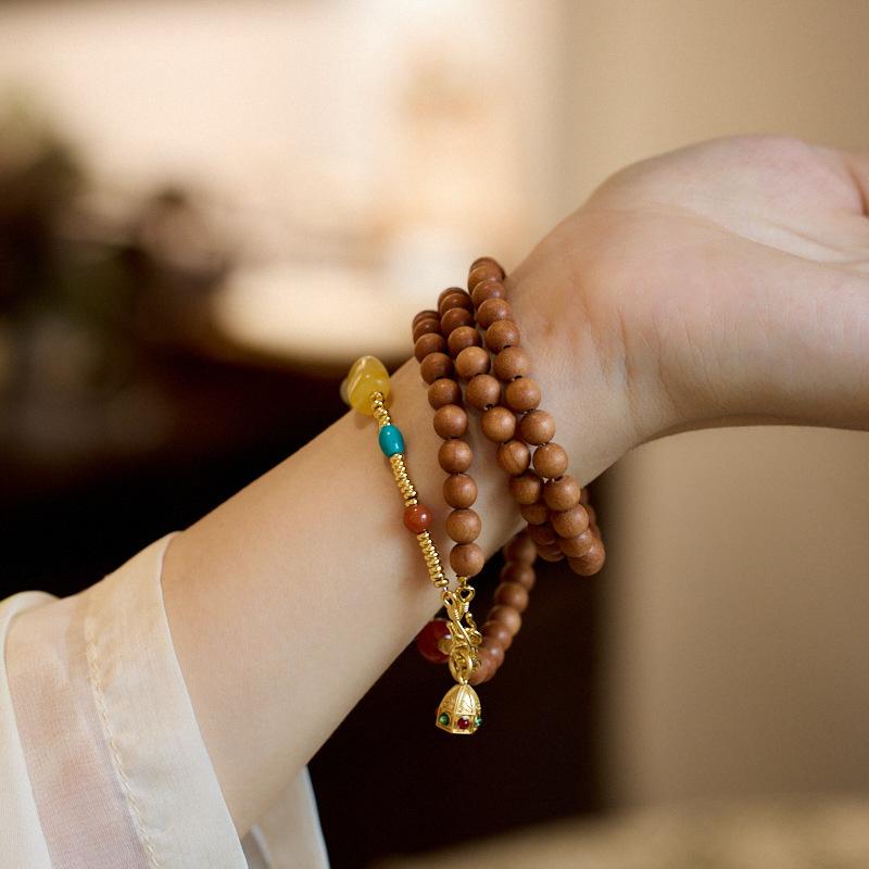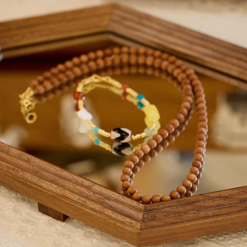 Milk Fragrance Barbie Sandalwood Necklace for Women Eight Treasures Dzi Bead Bracelet Adjustable Dual-use Versatile High-end Sweater Chain