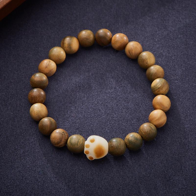 Natural 8MM Green Sandalwood Bracelet Charcoal Burnt Bodhi Cat Paw Design Style Cultural Play Bracelet for Men and Women