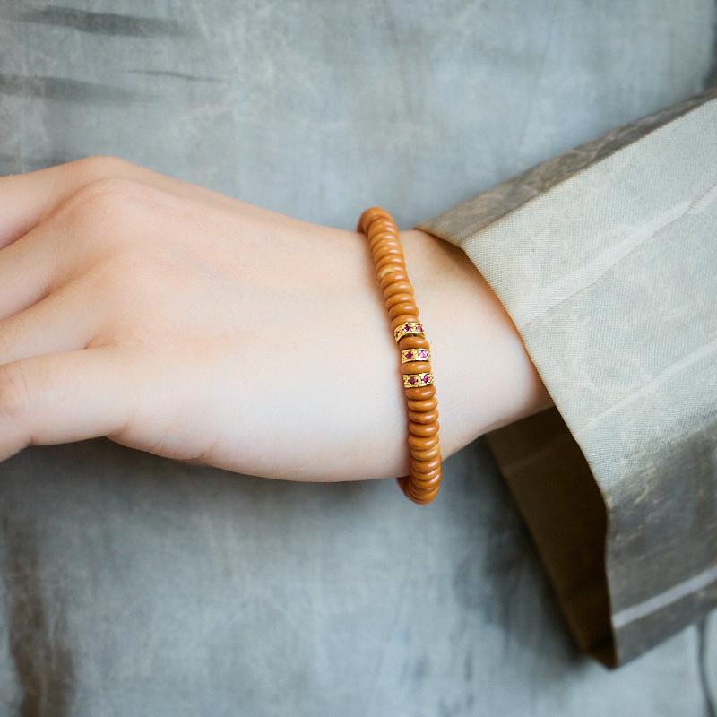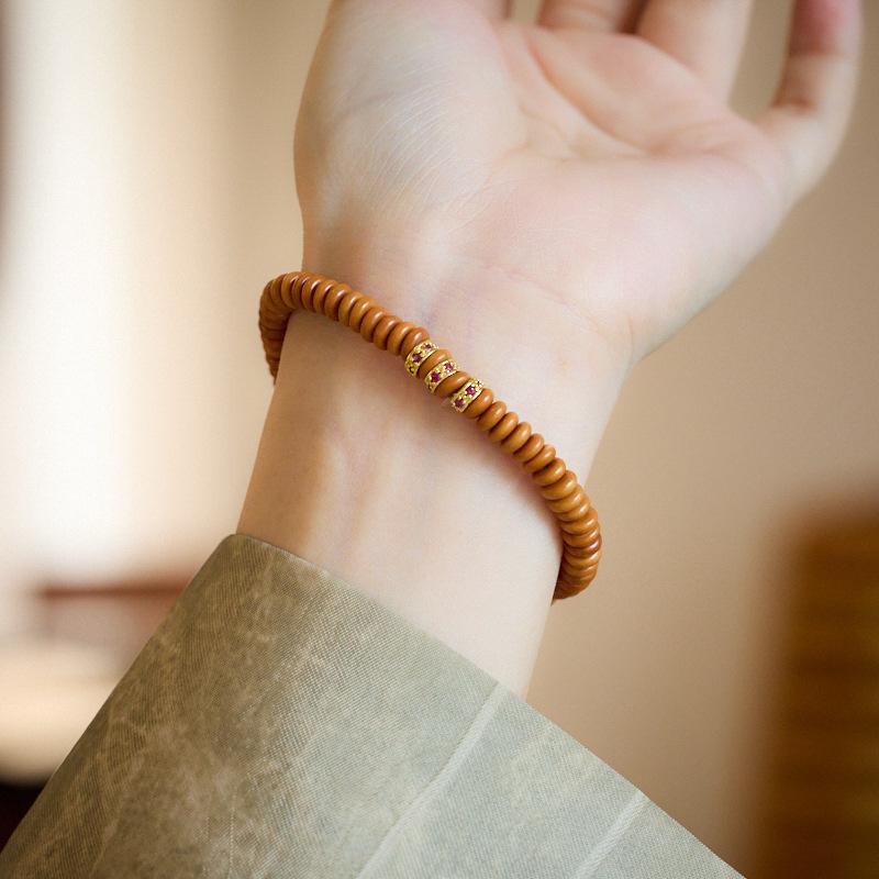Natural Olive Stone Bodhi Bracelet Multi-Gemstone Gold Diamond Medicine Tablet Bracelet High-End Sense Cultural Play Bracelet Best Friend Gift