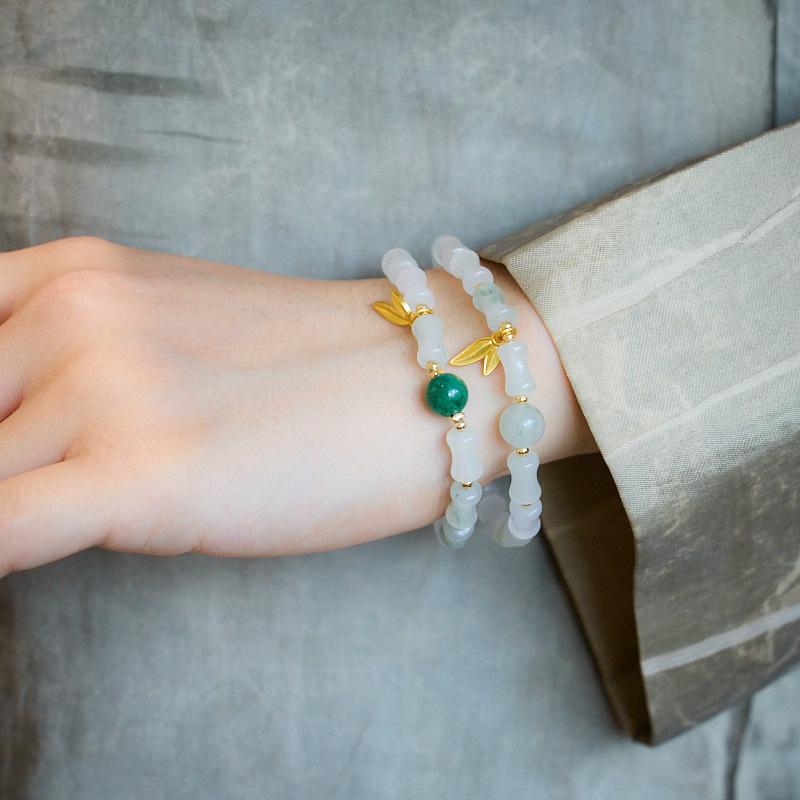 | Size | 6*10 mm Tianshan Green Bamboo Beads, 4 mm Dongling Jade, Suitable for Wrist Size 14- 16cm