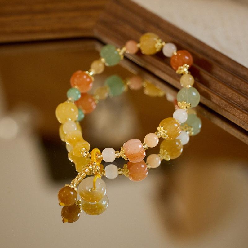Natural Xinjiang Golden Silk Jade Bracelet for Women, Wish Ring, Peace Buckle, Colorful Jade Bracelet, Gift for Best Friend
