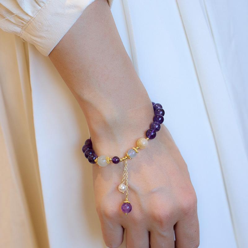 Niche Design Natural 8MM Amethyst Bracelet for Women with Pearl Tassel, Women's Bracelet Jewelry, Best Friend Gift