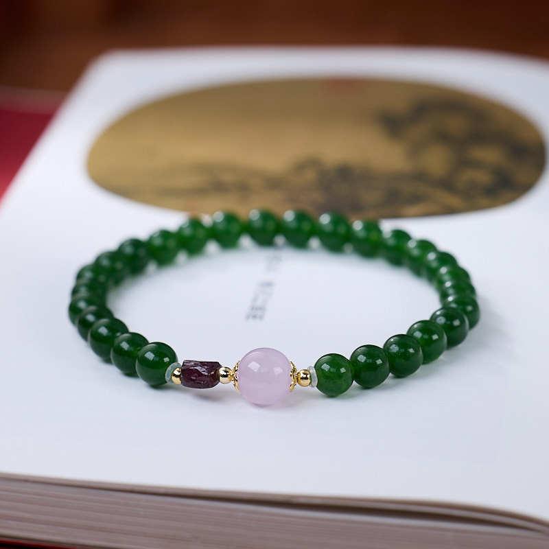 |Main Material|Green Chalcedony Imitation Jasper, Purple Chalcedony Imitation Kunzite, Kunzite, Tourmaline (Tourmaline Spacer Beads Color Random), S925 Silver Grass Scroll Pattern Accessories, Hetian Jade Gourd