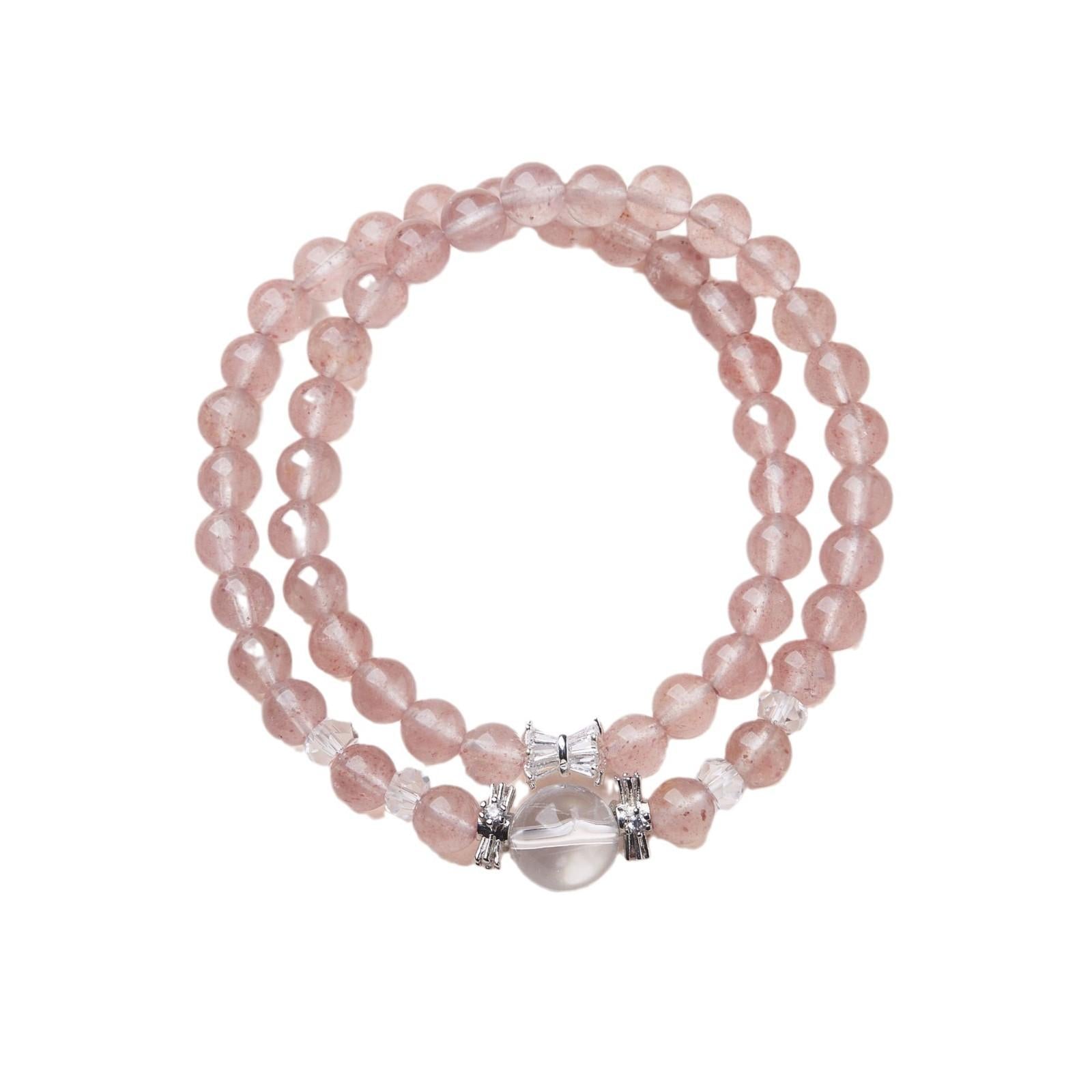 Strawberry Crystal Bracelet for Women, Slim Waist White Crystal Double Circle Bracelet, High-end Crystal